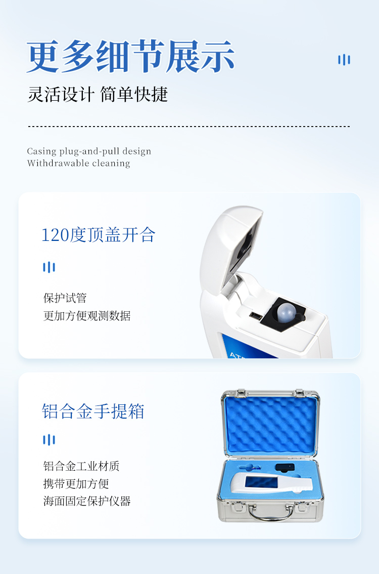 隨機(jī)配置:細(xì)菌檢測儀(手持)主機(jī)、儀器包、掛繩、電池、PC數(shù)據(jù)線、數(shù)據(jù)分析軟件、中文操作手冊