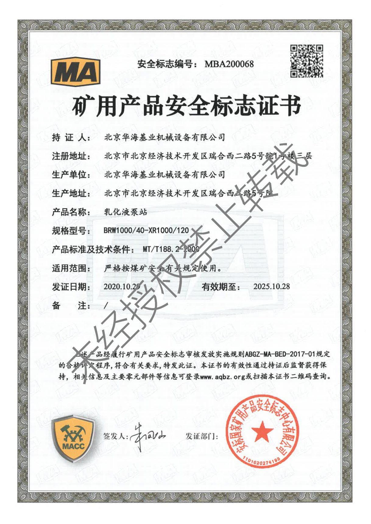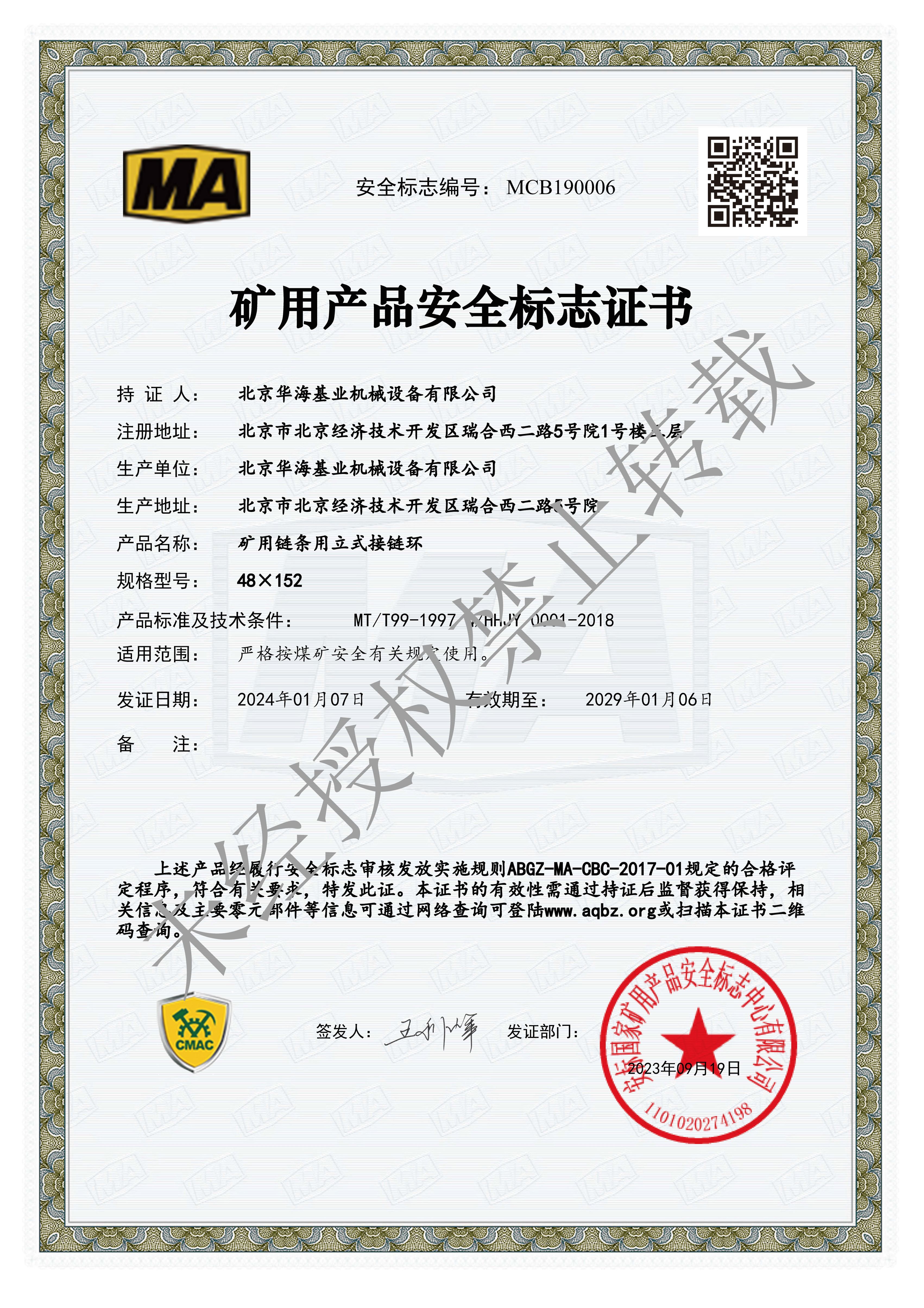 礦用產(chǎn)品安全標志證書