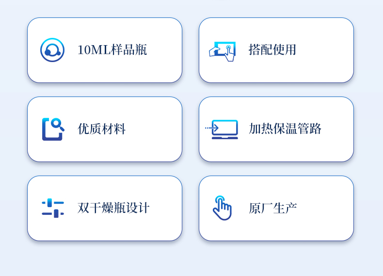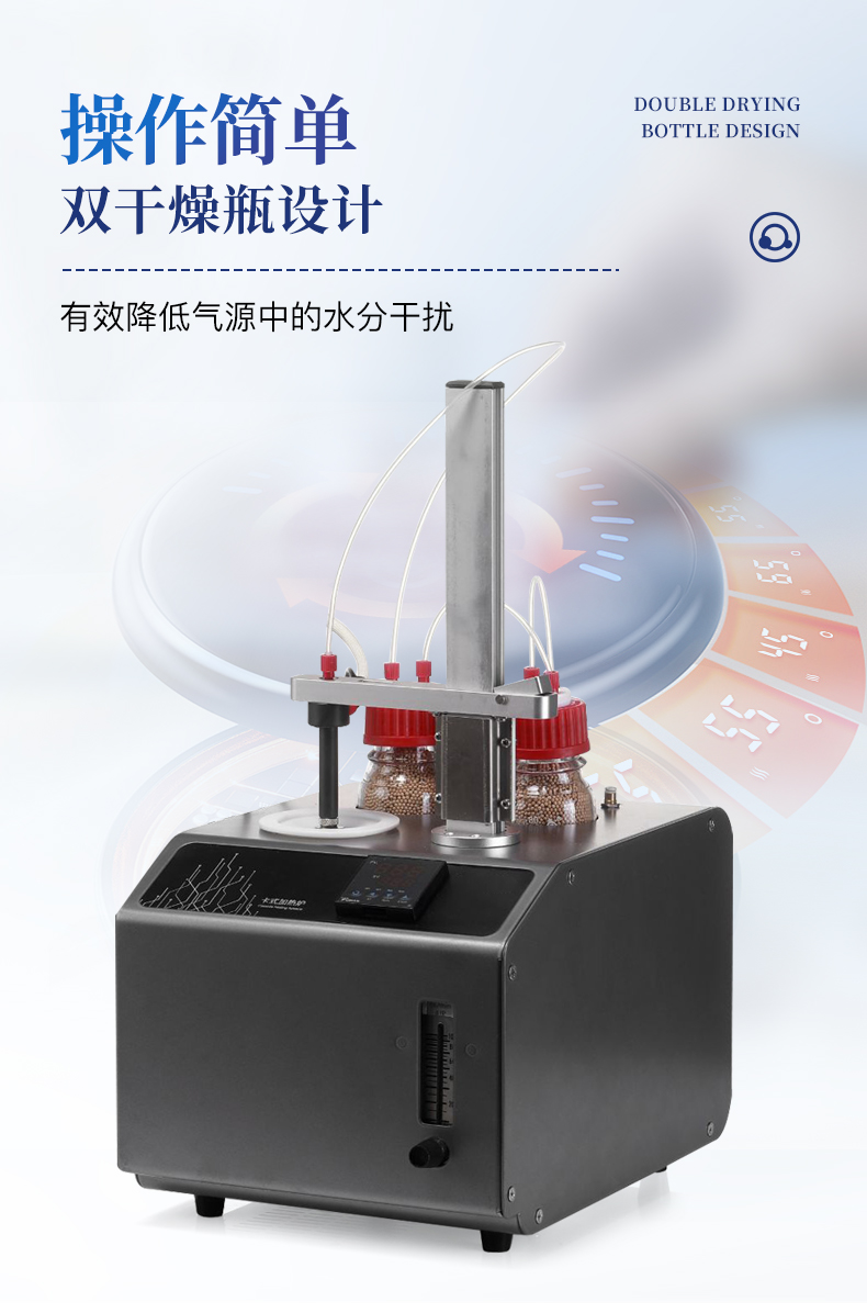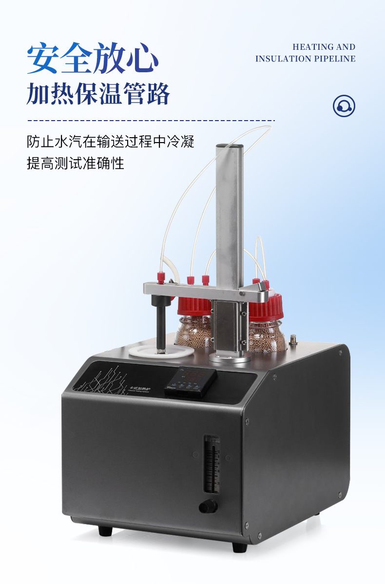 | 1、10ml樣品瓶:使用四氟與硅膠復(fù)合墊片,高溫條件下不會(huì)釋放可能產(chǎn)生副反應(yīng)的物質(zhì) | 2、雙干燥瓶設(shè)計(jì),有效降低氣源中的水分干擾 | 3、加熱保溫管路,防止水汽在輸送過程中冷凝,提高測(cè)試準(zhǔn)確性 |