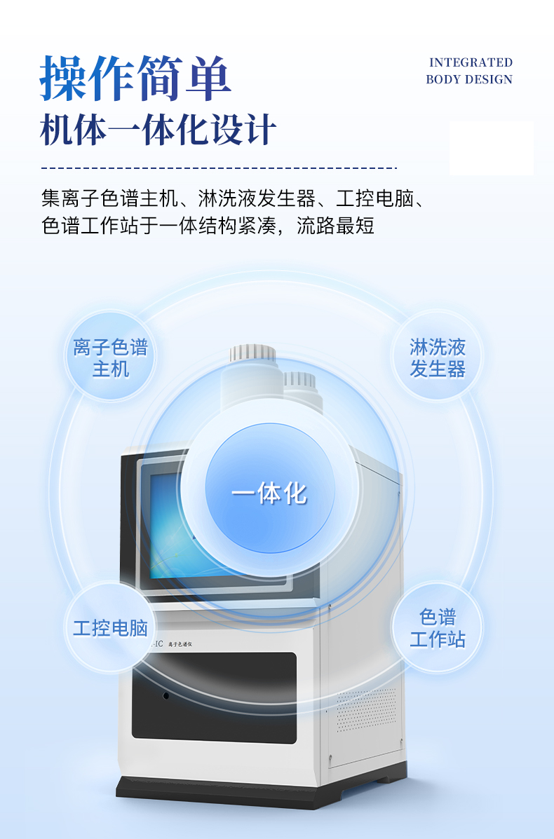 | 我們公司作為離子色譜儀器市場的新業(yè)態(tài),一直致力于為用戶提供更快捷、優(yōu)質(zhì)的儀器,以保障實驗室的建設(shè)和運行。始終堅持以客戶為中心,為有檢測需求的客戶服務(wù)。物美價廉、響應(yīng)迅捷、服務(wù)全面。 | 全新一代離子色譜儀,采用12.1吋純平工控電腦一體機設(shè)計(用戶不需要配電腦),實時顯示儀器運行參數(shù)和狀態(tài);一鍵啟動電動閥進(jìn)樣,一鍵完成儀器開關(guān)機、維護(hù)等操作,一鍵調(diào)閱儀器操作教程,方便快捷。 | 離子色譜儀核心零部件自主研發(fā)、自主知識產(chǎn)權(quán)可控。采用一體化設(shè)計,集離子色譜主機、淋洗液發(fā)生器、工控電腦、色譜工作站于一體,結(jié)構(gòu)緊湊,流路*短,對流路造成的峰型擴(kuò)展有很好的改善。一體化恒溫箱:色譜柱、抑制器、電導(dǎo)池、放大電路都處于同一恒溫系統(tǒng),改善了電導(dǎo)檢測器的溫飄和基線噪聲。內(nèi)置多處漏液報警器和缺水報警器,全方位安全監(jiān)控。由PLC控制的各個部件統(tǒng)一到電腦顯示屏的集中軟件控制系統(tǒng),操作方便,鼠標(biāo)所見即所控。 |