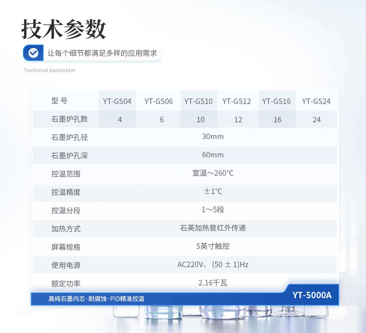 | 使用5寸彩色觸摸屏進(jìn)行儀器操作,配備安卓操作系統(tǒng),方便快捷。 | 采用PID 控溫技術(shù),控溫精度高,升溫速度快, 從室溫到260℃僅需25分鐘。 | 分段控溫設(shè)置,即可單段升溫,也可多段升溫,設(shè)置靈活,儀器將自動按順序完成。更適于易產(chǎn)生泡沫的樣品。 | 采用優(yōu)質(zhì)石墨爐內(nèi)芯,平均溫差較小,樣品效果一致性好,熱傳導(dǎo)效率更高。石墨塊具有特氟龍涂層,耐腐蝕,延長使用壽命。 |