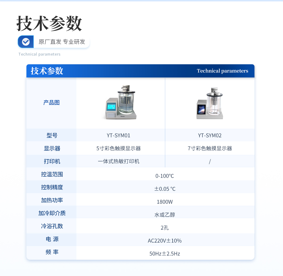 | ★顯示器:5寸彩色觸摸顯示器 | ★打印機(jī):一體式熱敏打印機(jī) | ★控溫范圍:0-100℃ | ★控制精度:±0.05 ℃ | ★加熱功率:1800W | ★加冷卻介質(zhì):水或乙醇 | ★冷浴孔數(shù):2孔 | ★電 源:AC220V±10% | ★頻 率:50Hz±2.5Hz |