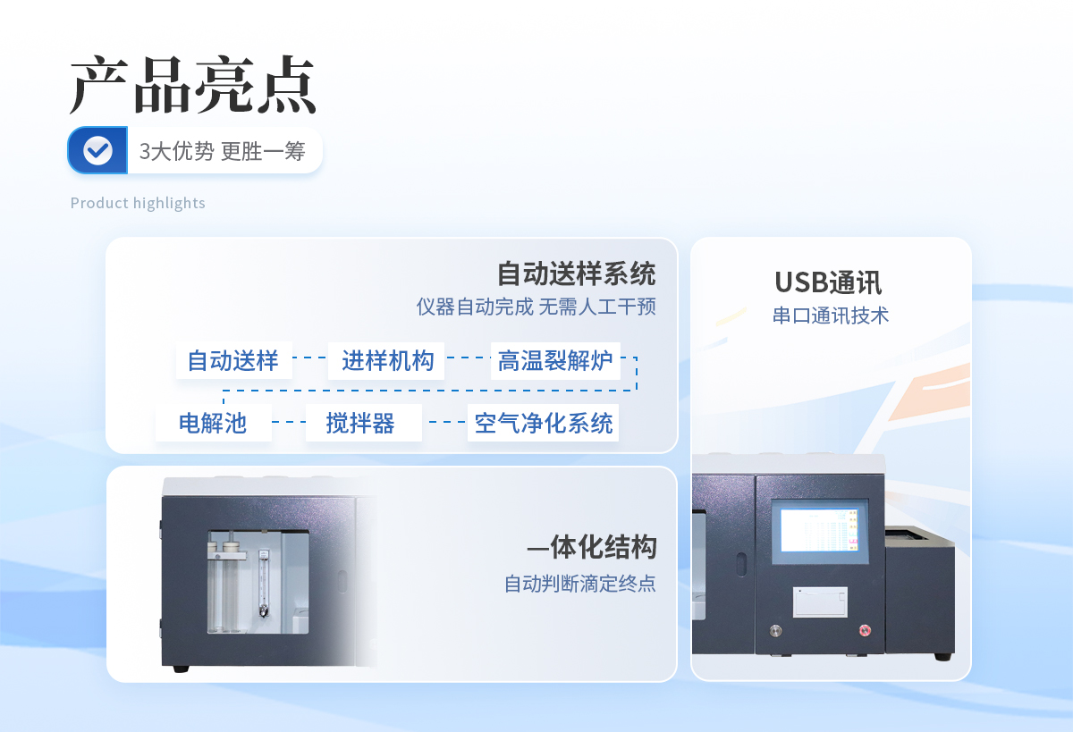 | 1、 手自一體化自動(dòng)送樣系統(tǒng),將自動(dòng)送樣、進(jìn)樣機(jī)構(gòu)、高溫裂解爐、電解池、攪拌器、空氣凈化系統(tǒng)等部件巧妙地結(jié)合在一起,使儀器結(jié)構(gòu)更加緊湊,更加合理、更加穩(wěn)定。可在線(xiàn)式插隊(duì)添加樣品,無(wú)需人工送樣,自動(dòng)化程度高,若樣品少也可采用手動(dòng)送樣方式。 | 2、采用—體化結(jié)構(gòu),自動(dòng)判斷滴定終點(diǎn),縮短了實(shí)驗(yàn)時(shí)間。所有關(guān)鍵部件均采用了設(shè)計(jì)理念及進(jìn)行了嚴(yán)格的控制,確保儀器能長(zhǎng)時(shí)間穩(wěn)定運(yùn)行。 | 3、采用特別的數(shù)據(jù)采集網(wǎng)絡(luò)及多級(jí)校正技術(shù),確保高、中、低硫含量測(cè)試結(jié)果的準(zhǔn)確性。 | 4、送樣機(jī)構(gòu)采用電子電解液分子濃度采集電路,可靠性高,不會(huì)產(chǎn)生過(guò)電解現(xiàn)象。 | 5、串口通訊技術(shù),可采用usb通訊,兼容性好,具有廣泛的適用性。 | 6、自由設(shè)置送樣時(shí)間及預(yù)置溫度,采用進(jìn)口霍爾元件控制送樣位置。 | 7、采用剛玉瓷舟,減少卡樣的可能。一次可放1-24個(gè)樣由程序控制實(shí)現(xiàn)自動(dòng)升溫、控溫、送樣、測(cè)定,結(jié)果自動(dòng)存盤(pán)、自動(dòng)打印,并可中途在線(xiàn)式插隊(duì)添加試樣,大大地提高了工作效率,真正實(shí)現(xiàn)無(wú)人值守; | 8、采用庫(kù)侖滴定法進(jìn)行測(cè)定,測(cè)定時(shí)間可根據(jù)不同試樣自動(dòng)判斷,速度優(yōu)于艾士卡重量分析法和高溫燃燒中和法; |
