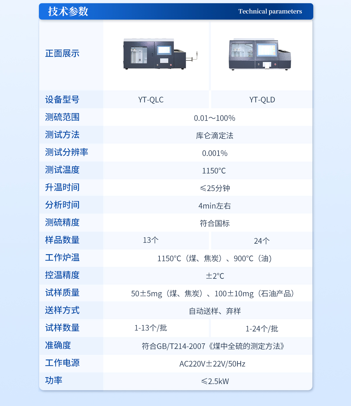 | 測(cè)硫范圍:0.01~100% | 測(cè)試方法:庫(kù)侖滴定法 | 測(cè)試分辨率:0.001% | 測(cè)試溫度:1150℃ | 升溫時(shí)間:≤25分鐘 | 分析時(shí)間:4min左右 | 測(cè)硫精度:符合國(guó)標(biāo) | 樣品數(shù)量:24個(gè) | 工作爐溫:1150℃(煤、焦炭)、900℃(油) | 控溫精度:±2℃ | 試樣質(zhì)量:50±5mg(煤、焦炭)、100±10mg(石油產(chǎn)品) | 送樣方式:自動(dòng)送樣、棄樣 | 試樣數(shù)量:1-24個(gè)/批,試驗(yàn)過(guò)程可添加/替換試樣 | 準(zhǔn)確度:符合GB/T214-2007《煤中全硫的測(cè)定方法》 | 工作電源:AC220V±22V/50Hz 功率:≤2.5kW |
